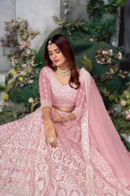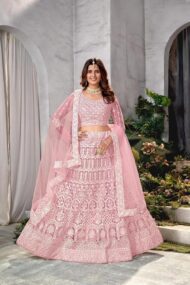 2 reviews for VARNI FABRICS: A lady’s First Love Net Embroidered Work Womens Lehenga Choli For Ceremonial by VintaVool
