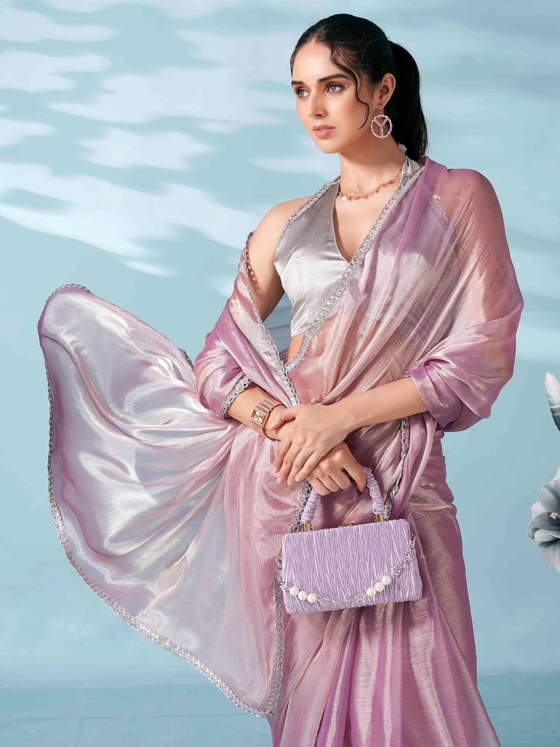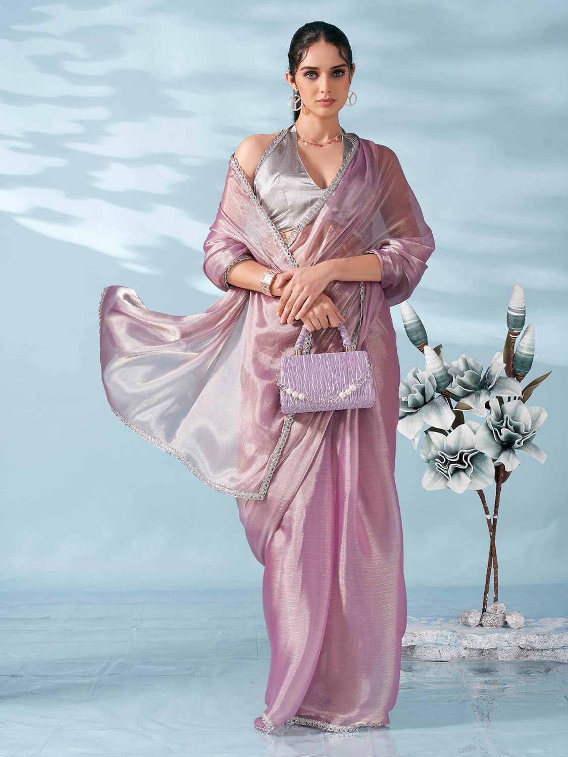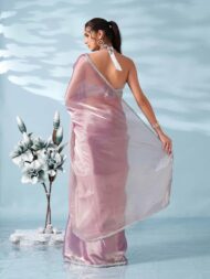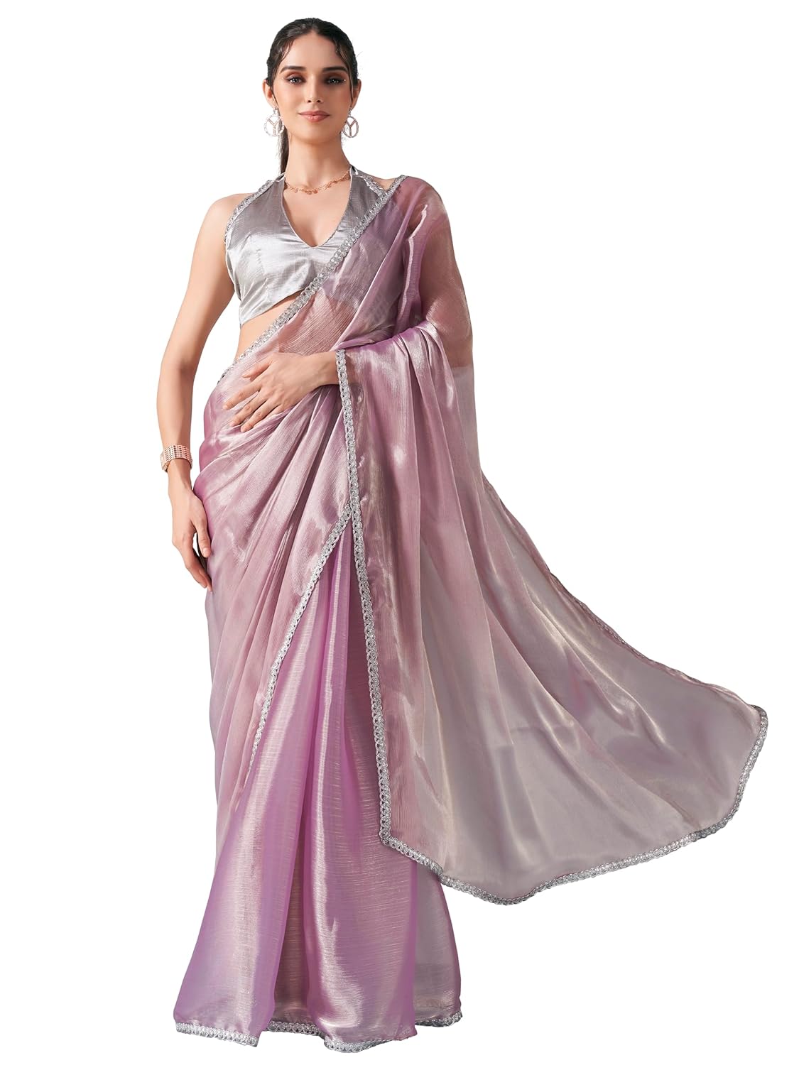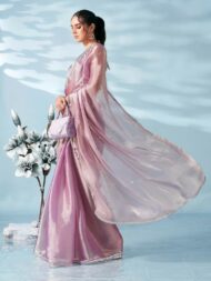 Womanista Women’s Lavendar colored shimmer satin saree with embellished lace(TI6699_Lavendar_Onesize)