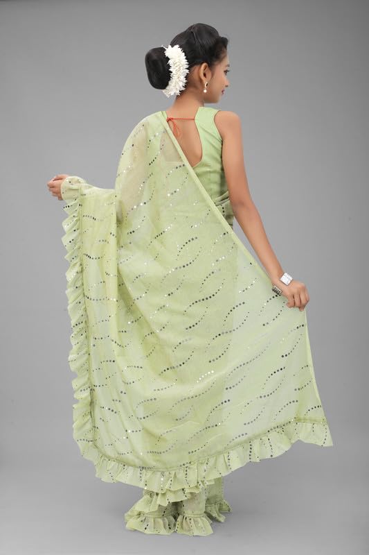 Xavima Kids Fancy Jari Tikli Work Ready to Wear Saree With Unstitched Blouse Piece by VintaVool