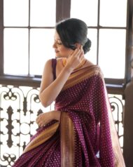 This saree is absolutely beautiful! The deep purple shade with golden border and intricate detailing gives it a rich and classy look. The fabric feels soft and comfortable, making it easy to drape. Perfect for festive occasions, weddings, or traditional events. Definitely a great buy for the price! Highly recommended! ð