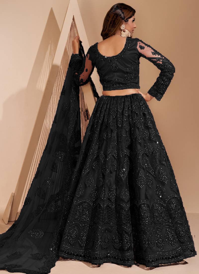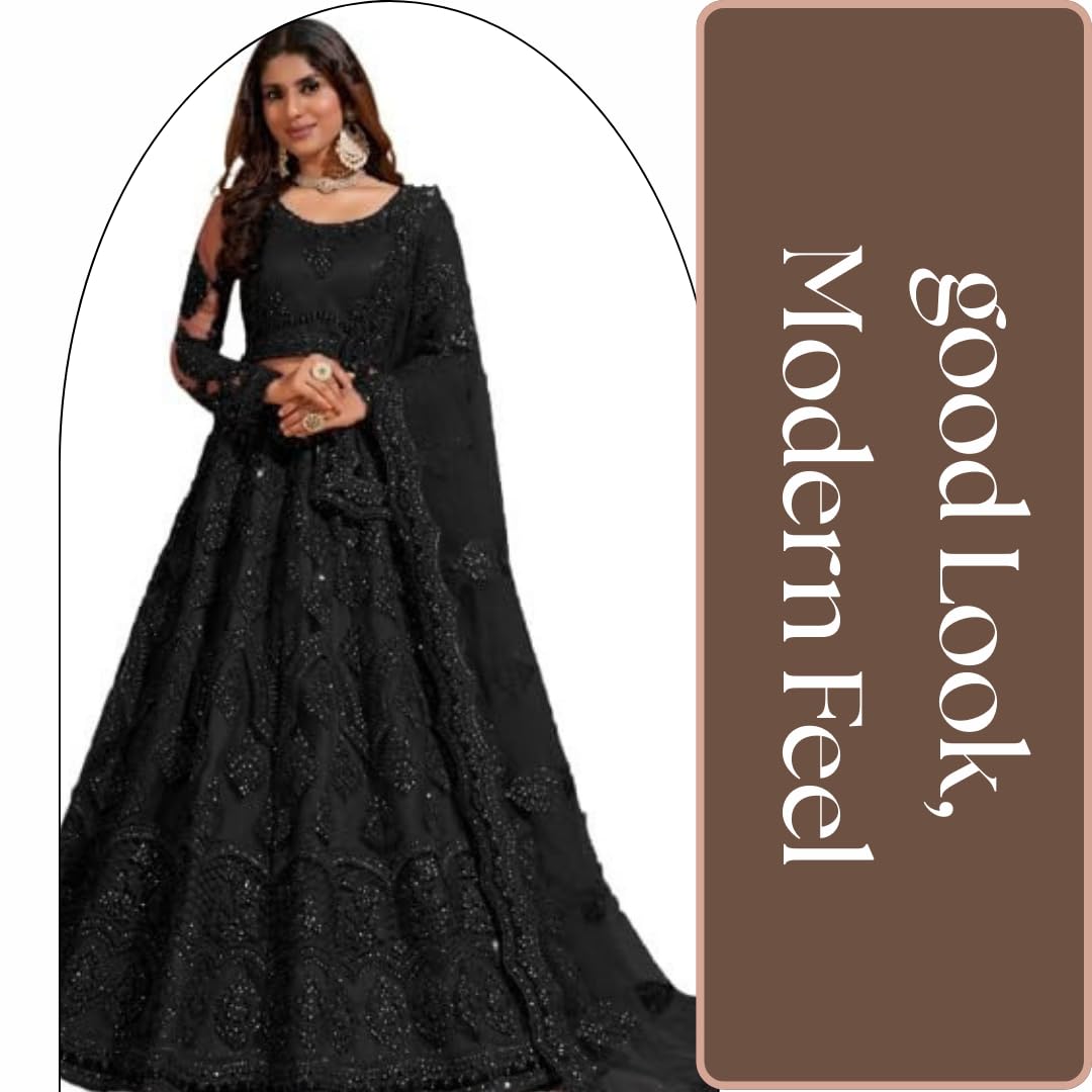ZAALIMA FASHION WITH Z LOGO Women’s Net Embroidered Semi-Stitched Lehenga Choli And Dupatta Set (Free Size) by VintaVool