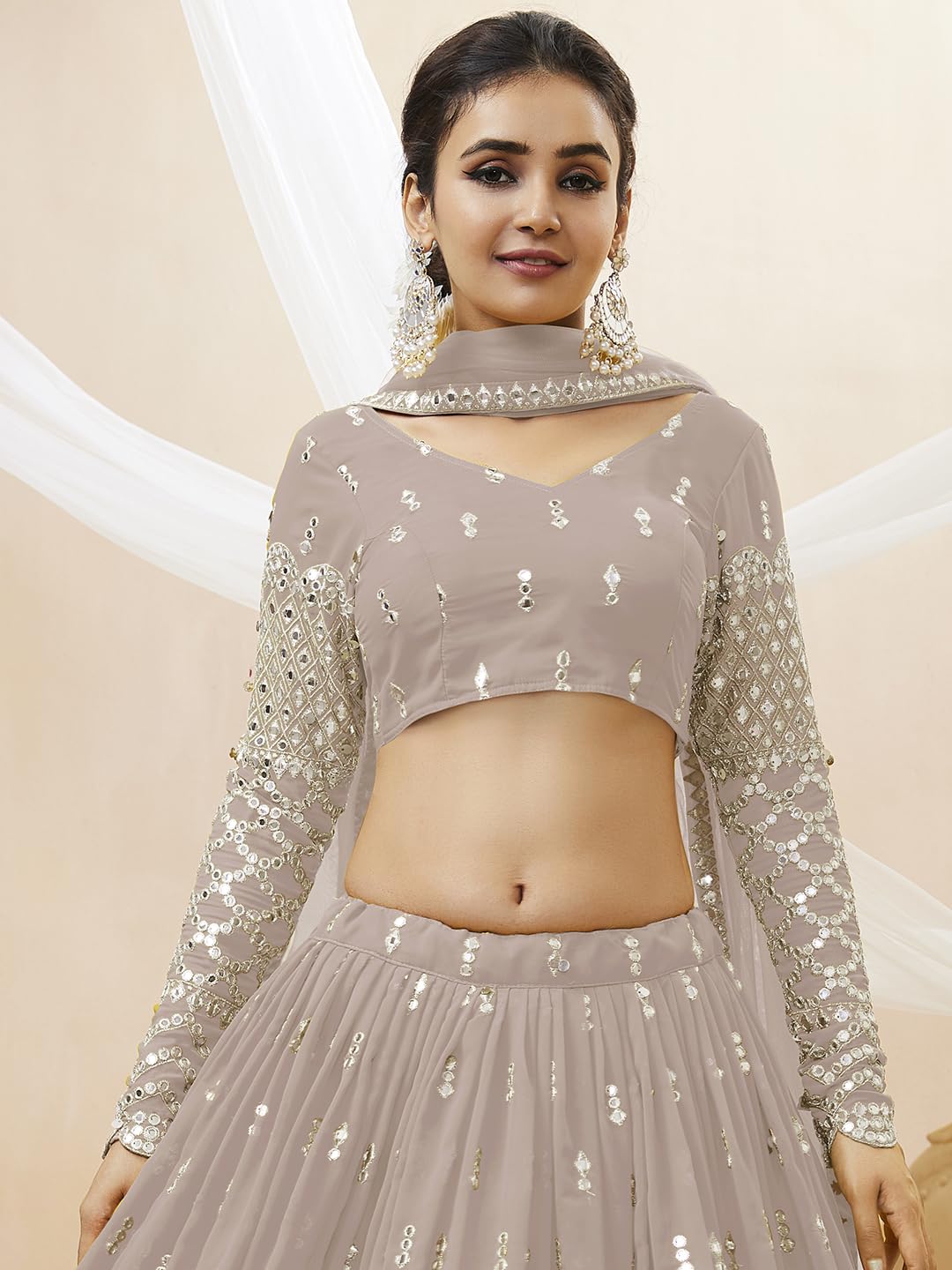 8 reviews for Zeel Clothing Women’s Georgette Embroidered Fabric Sequins Zari Embroidered Semi-Stitched Lehenga Choli With Dupatta (300-Wedding-Bridal–New-Stylish) by VintaVool