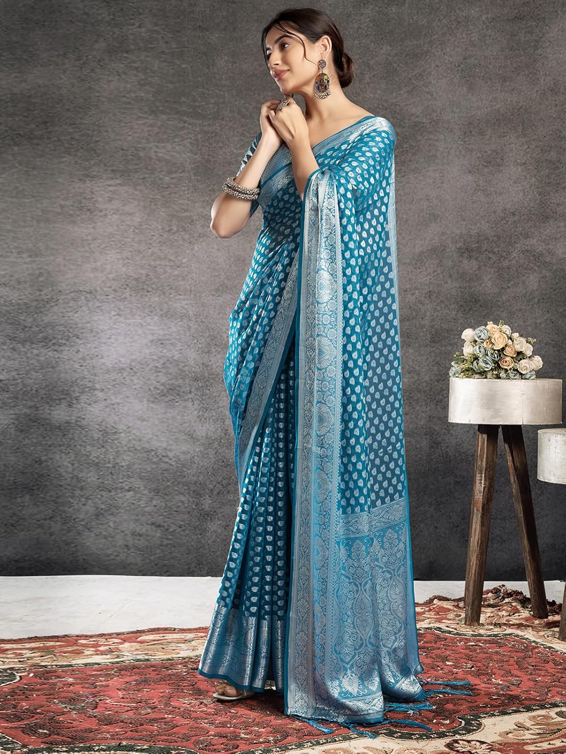 Satrani Women’S Chiffon Self Woven Saree With Unstitched Blouse Piece by VintaVool